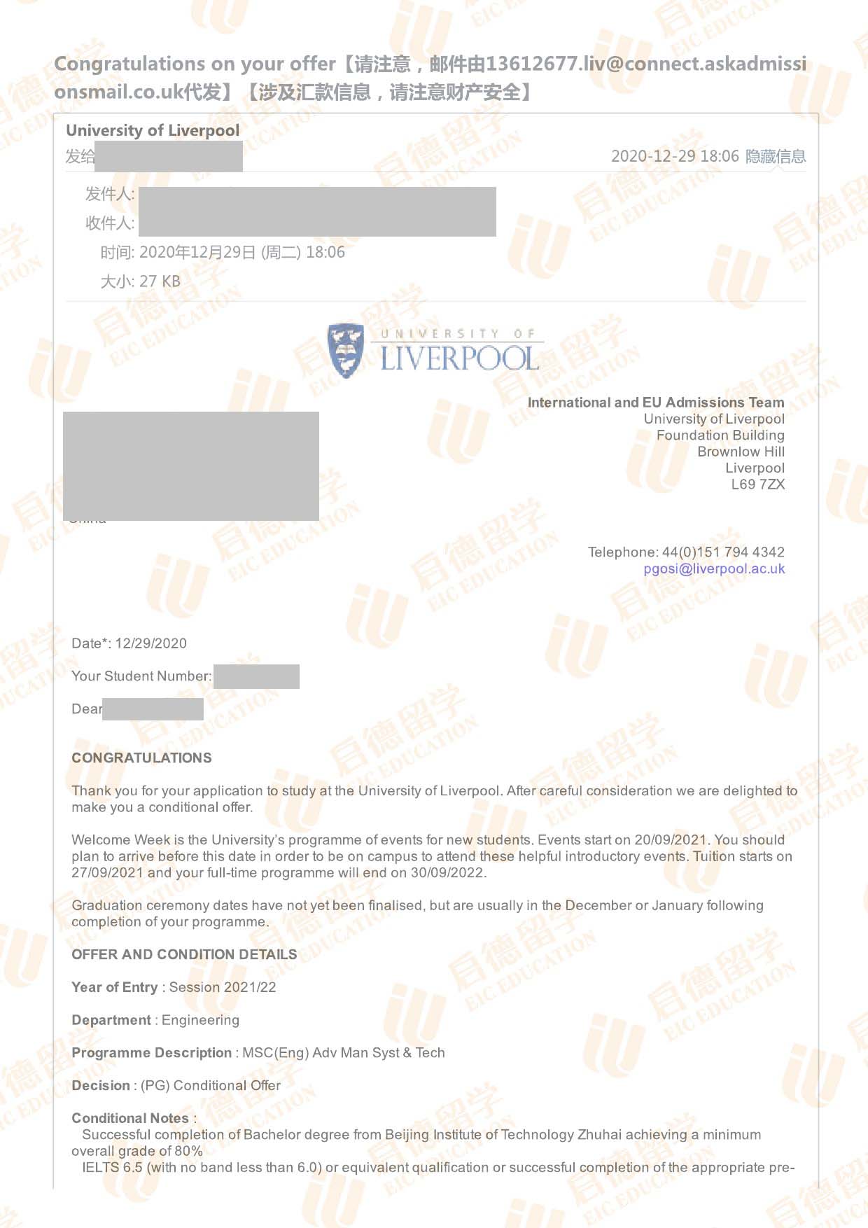 录取院校:利物浦大学