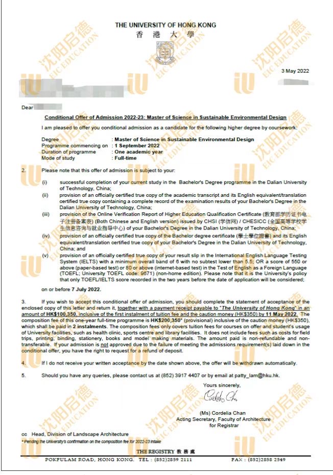 录取院校:香港大学