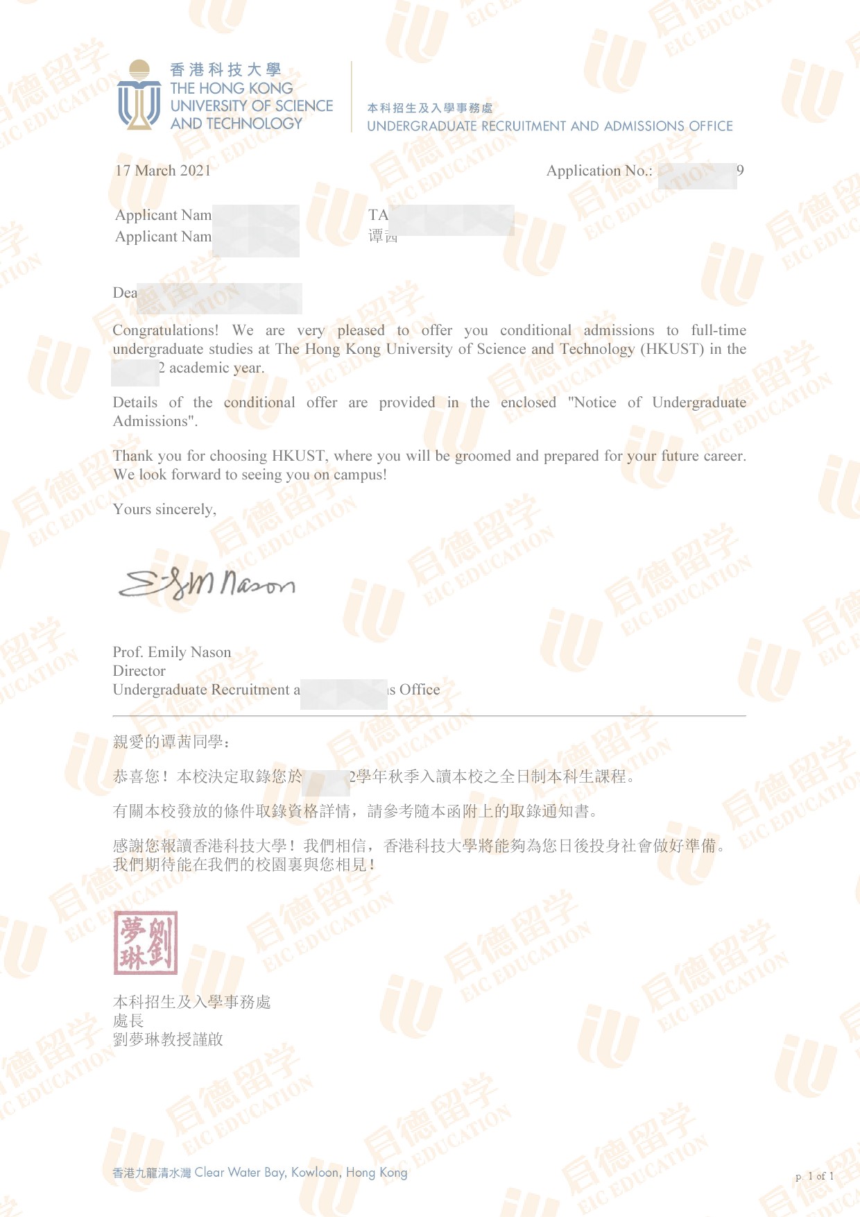 录取院校:香港科技大学