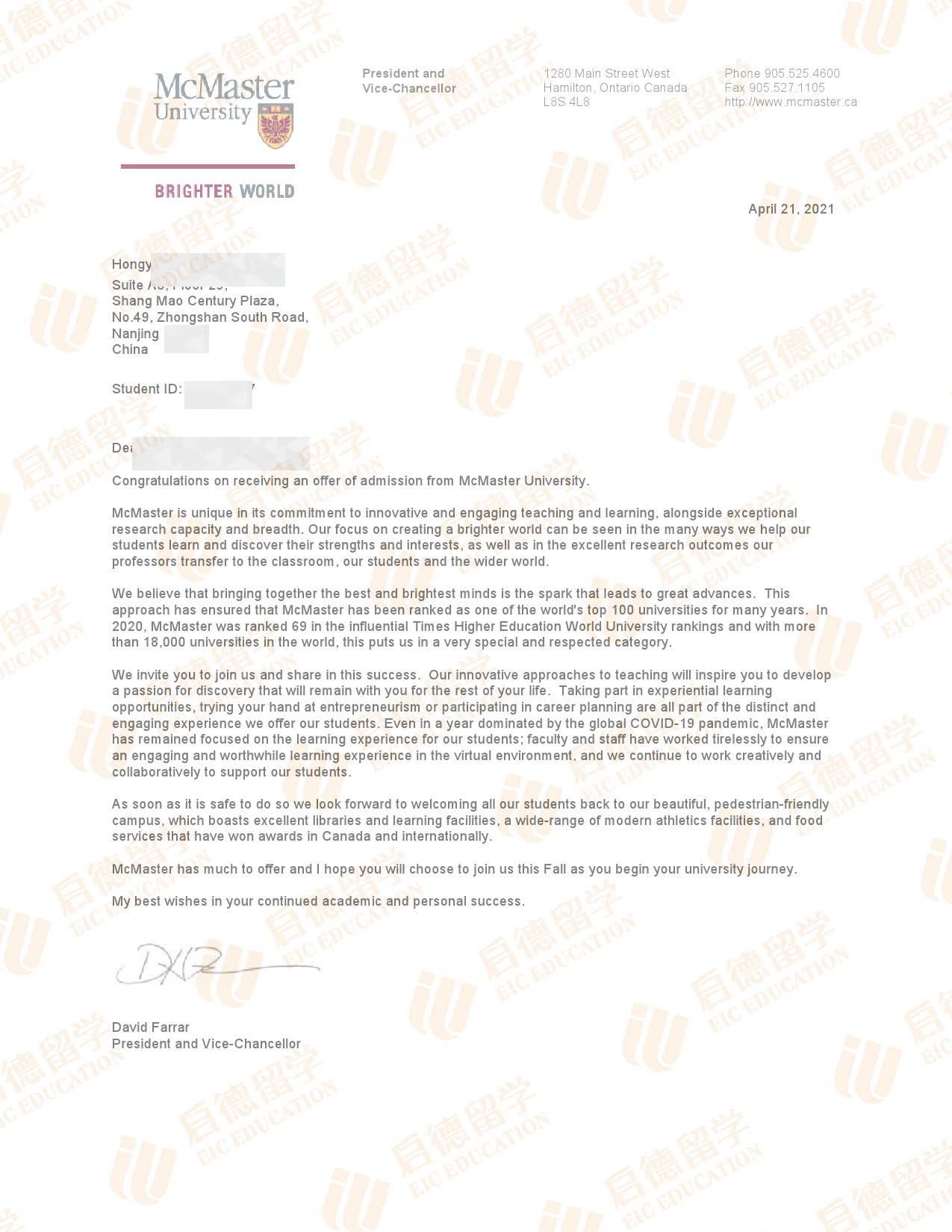 录取院校:麦克马斯特大学