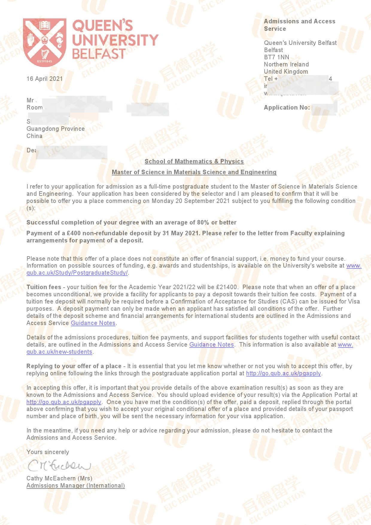 录取院校:英国女王大学