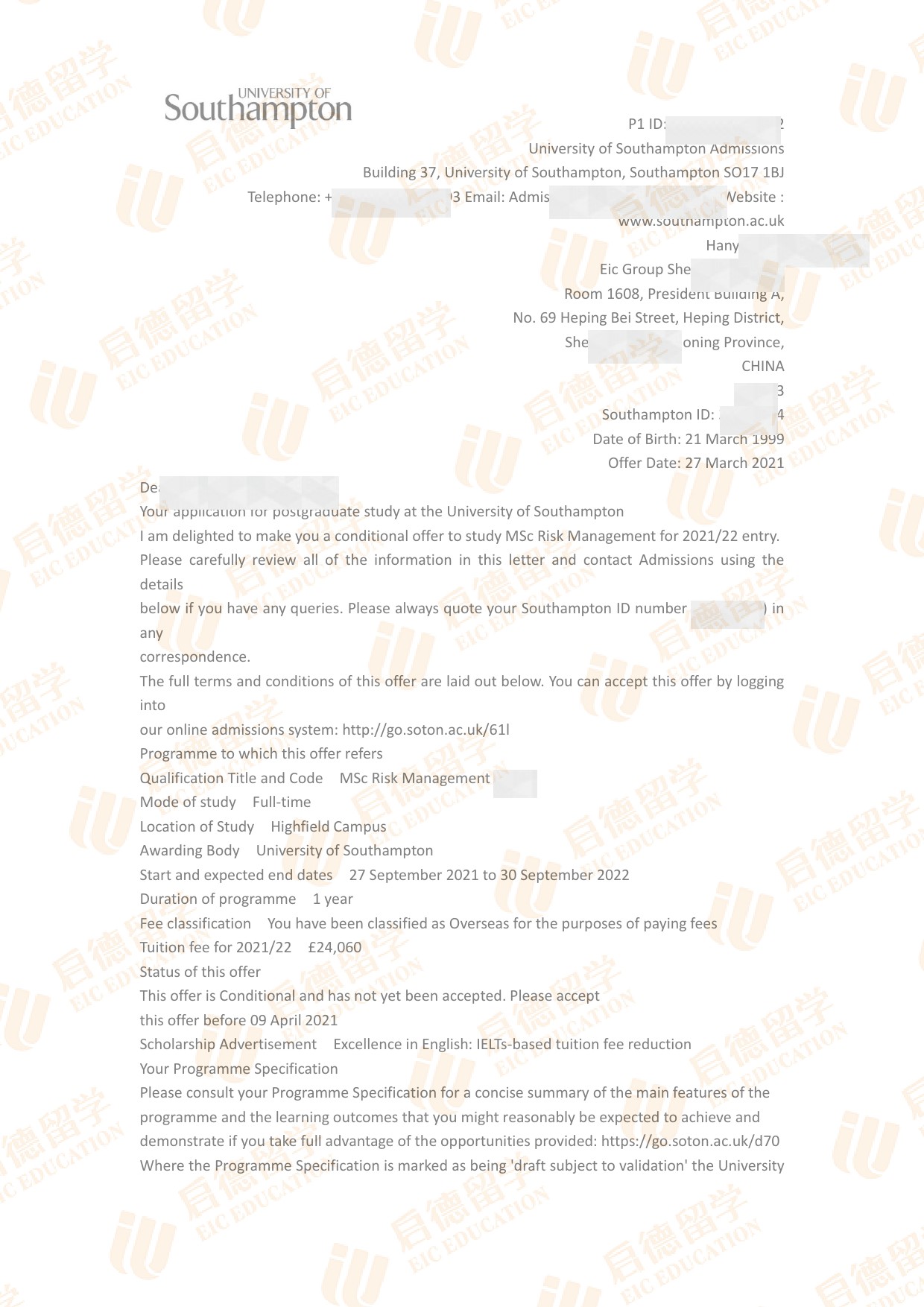 录取院校:南安普顿大学