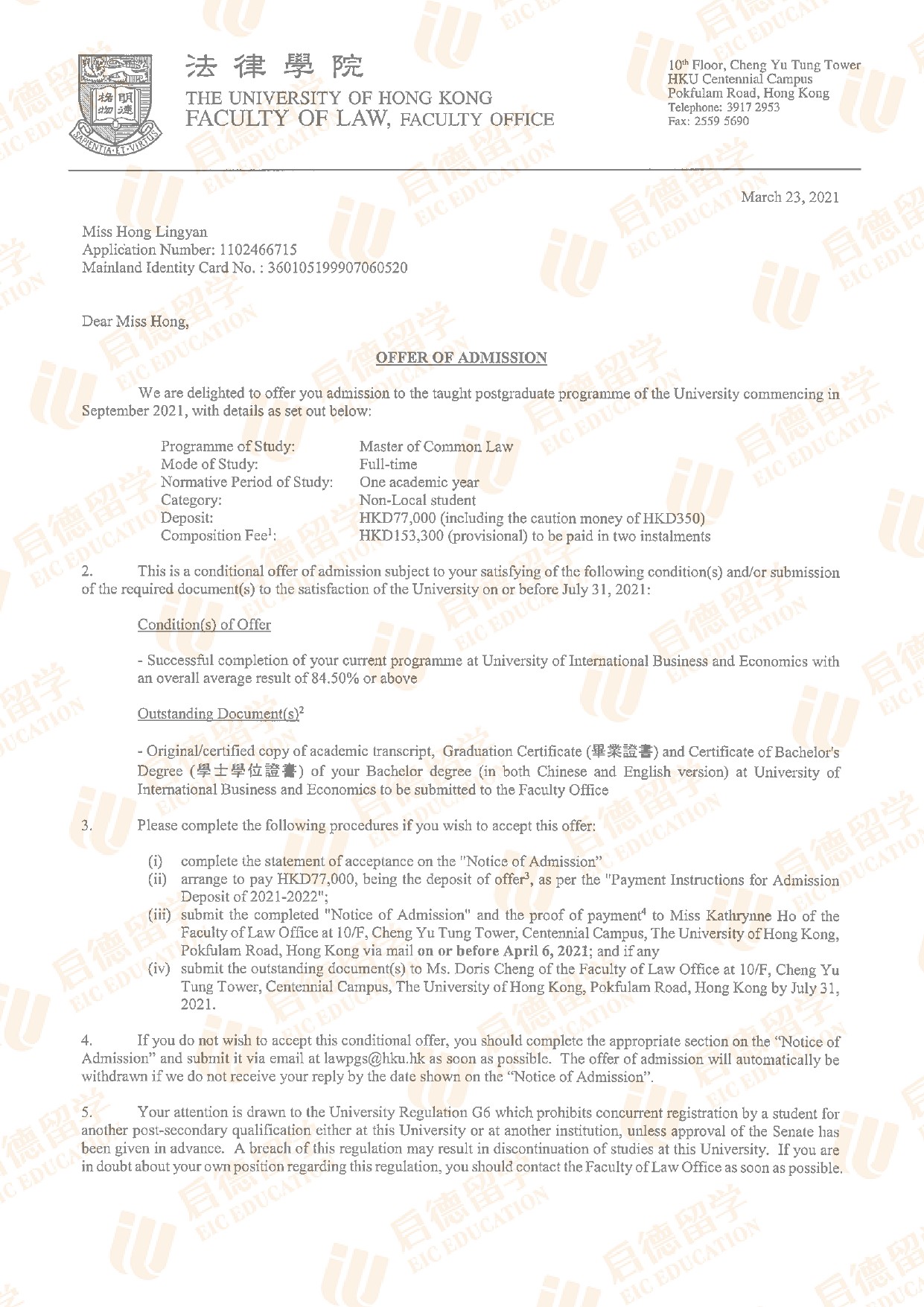 录取院校:香港大学