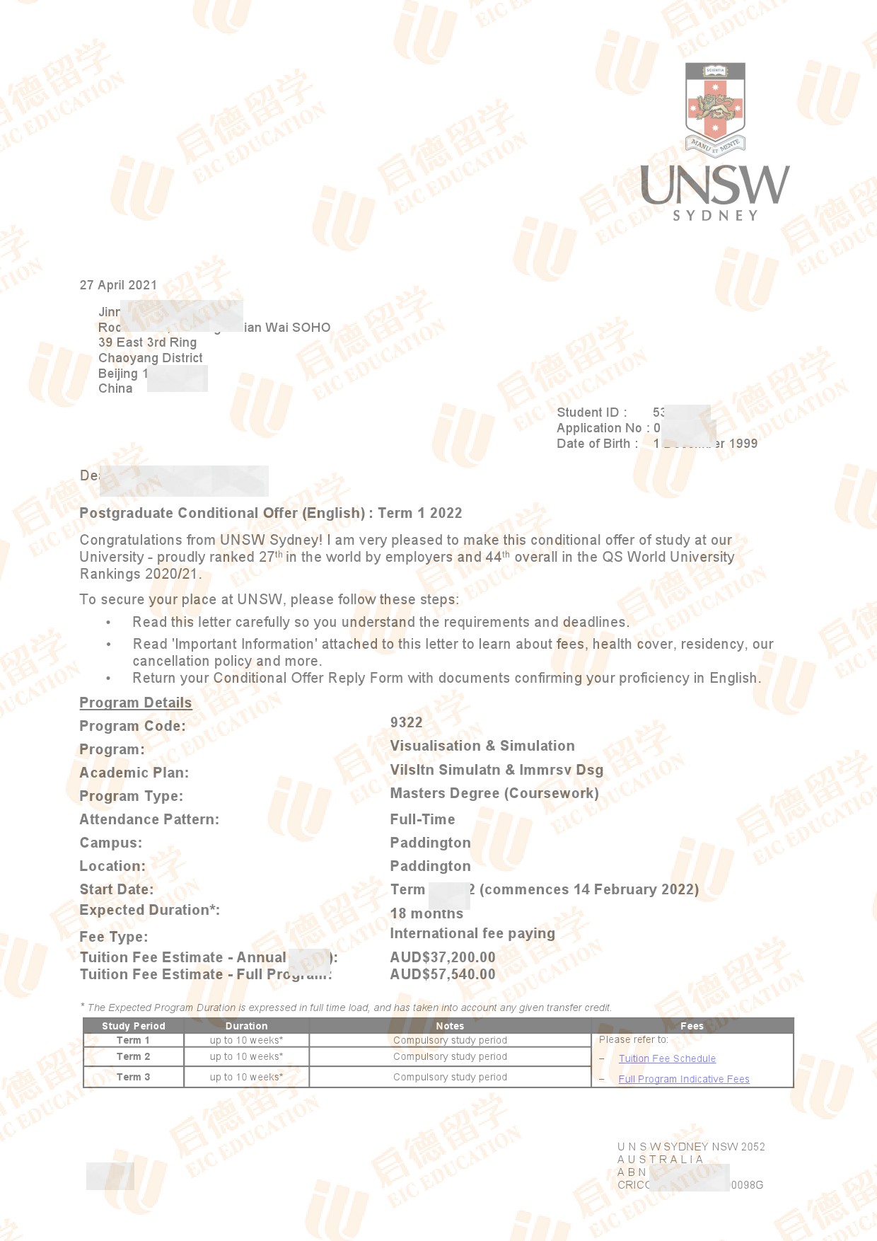 录取专业:Master of Visualisation, Simulation & Immersive Design