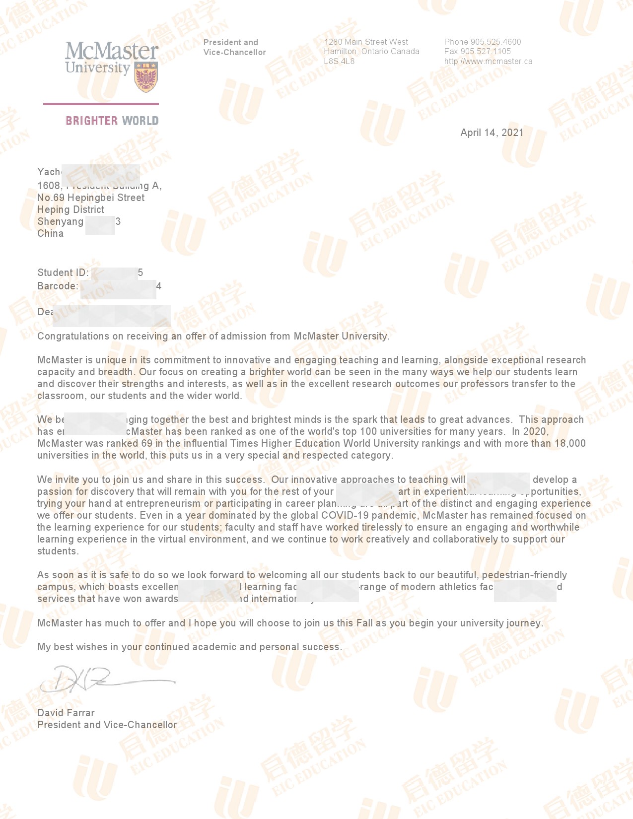 录取院校:麦克马斯特大学