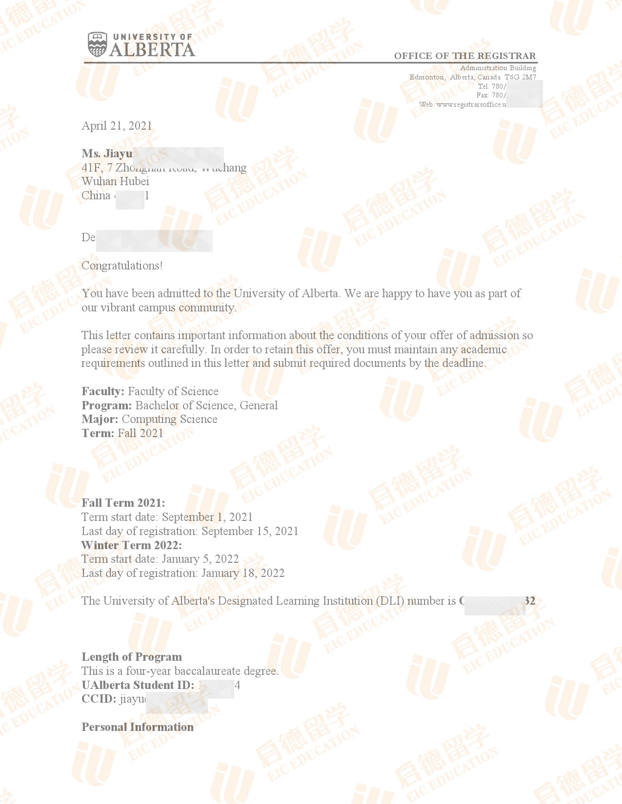 录取院校:阿尔伯塔大学
