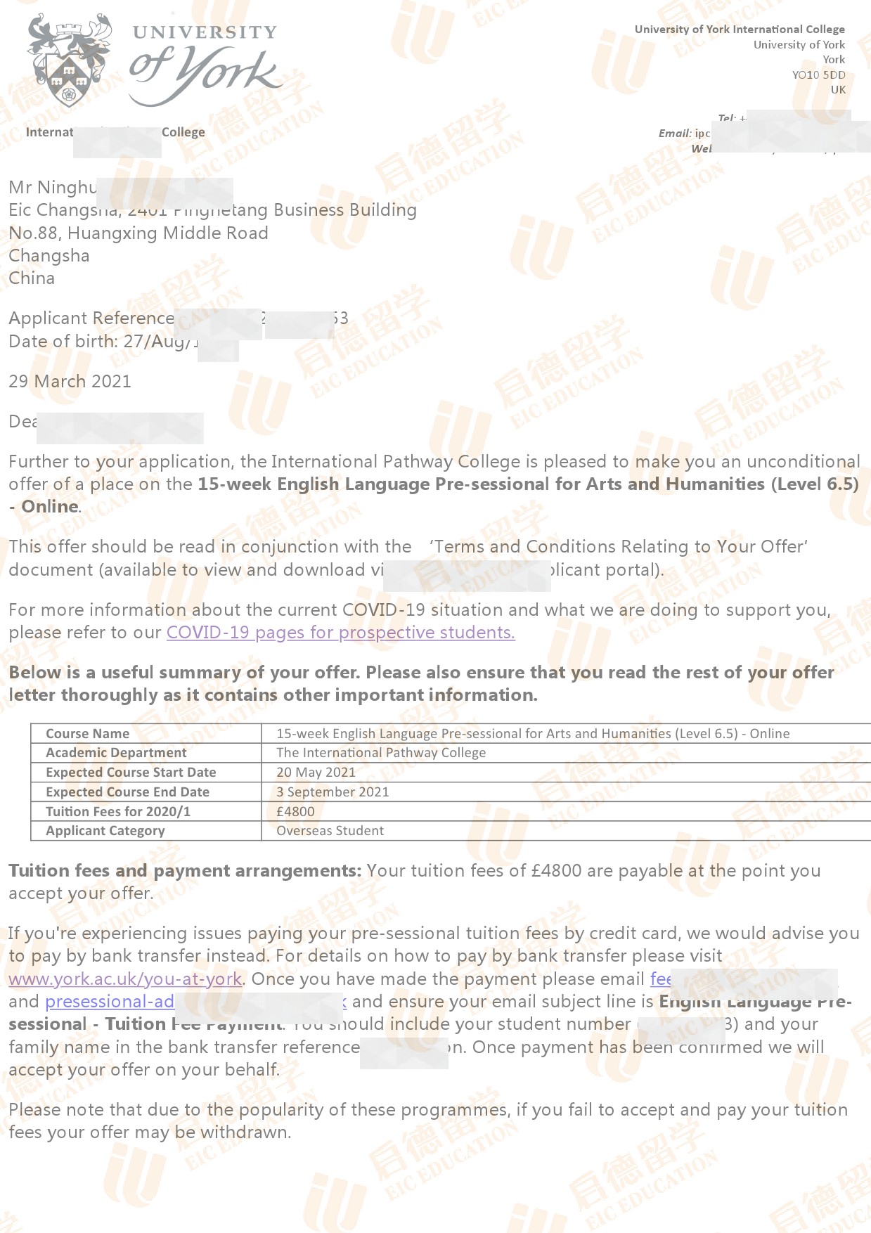 录取院校:约克大学