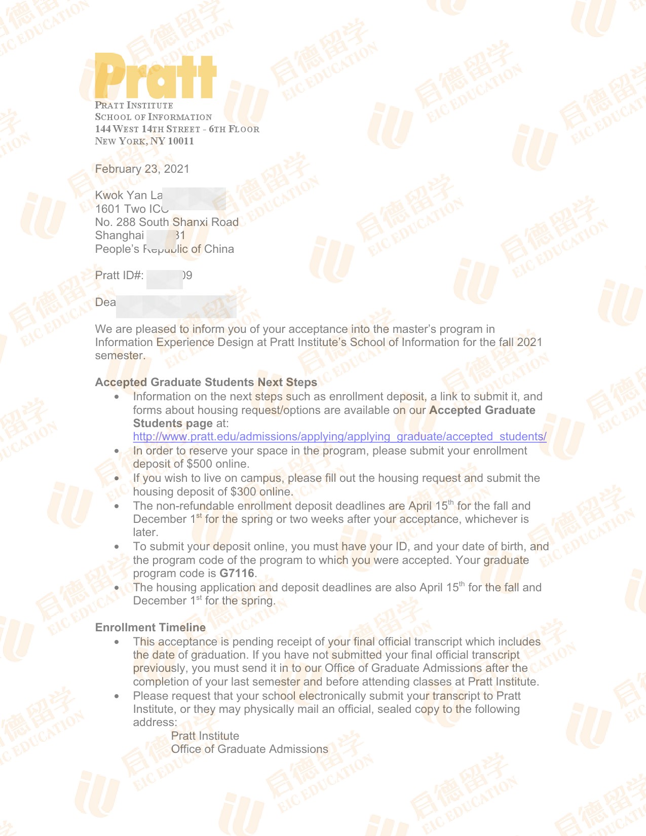 录取院校:普拉特学院