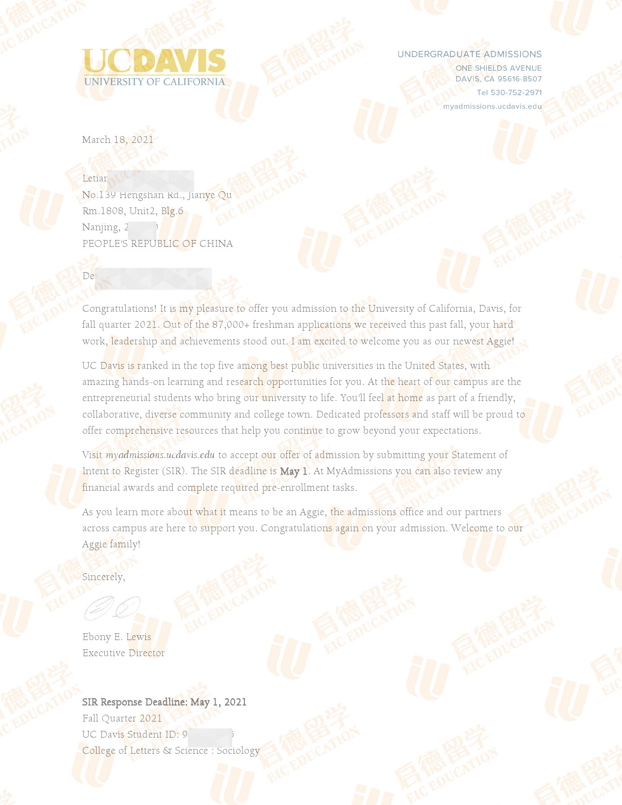 录取院校:加州大学戴维斯分校