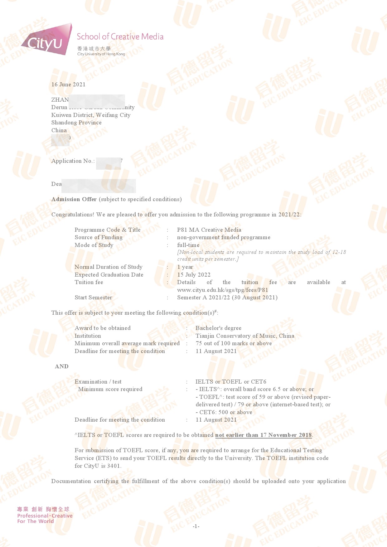 录取专业:MA Communication and New Media