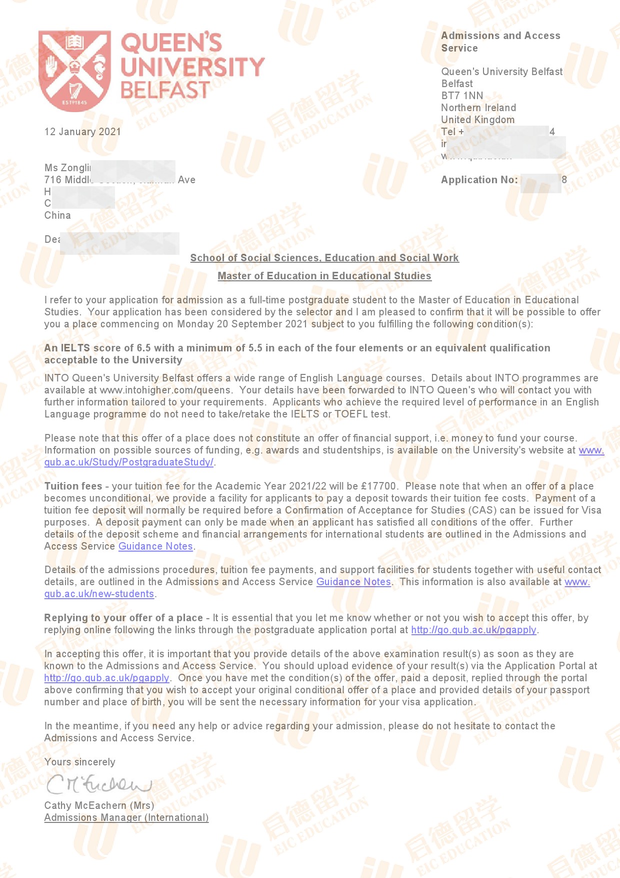 录取专业:MEd Educational Studies