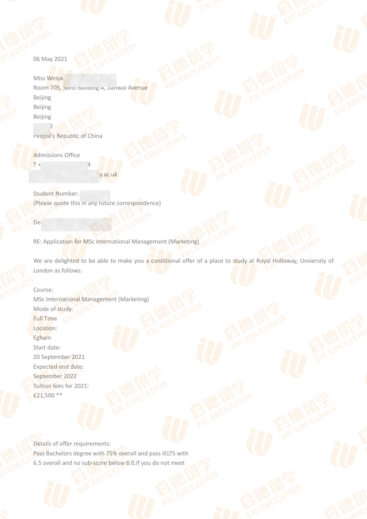 录取专业:MSc Marketing and Management