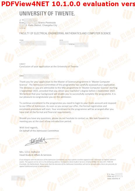 录取院校:特文特大学