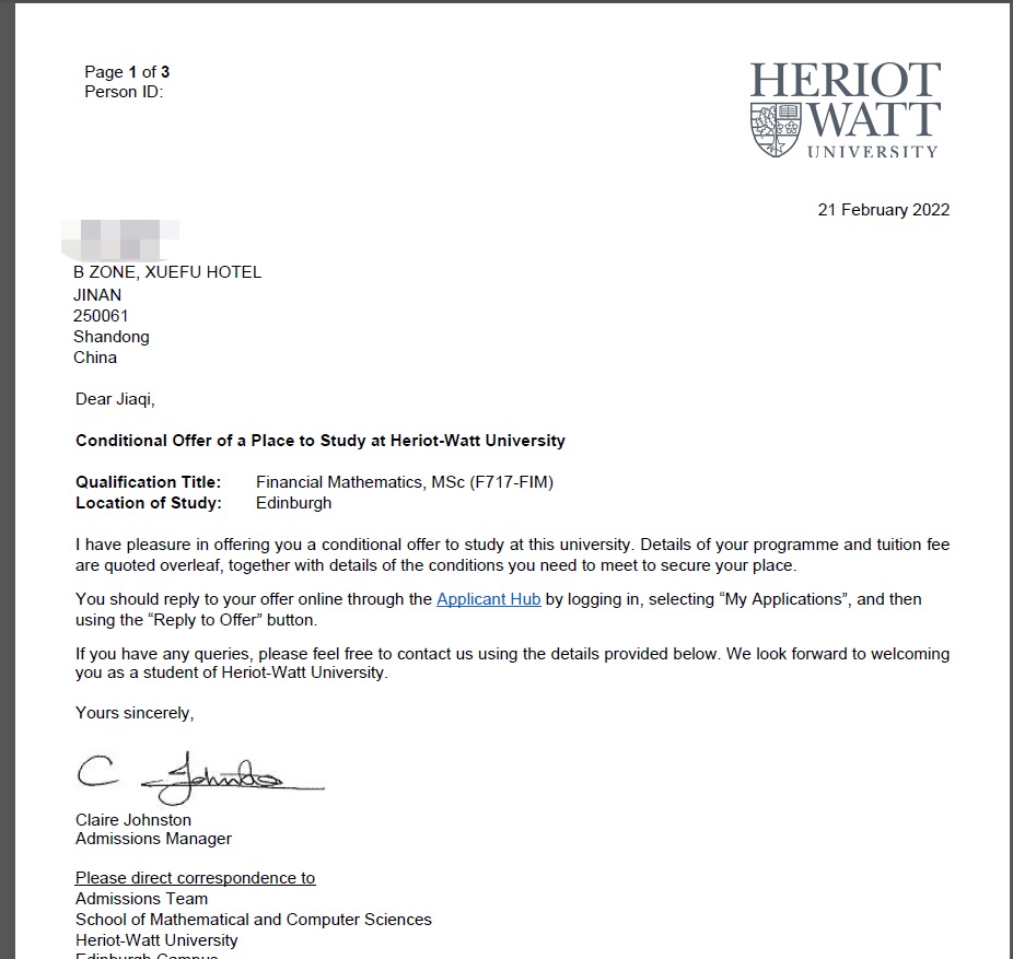 录取院校:爱丁堡大学