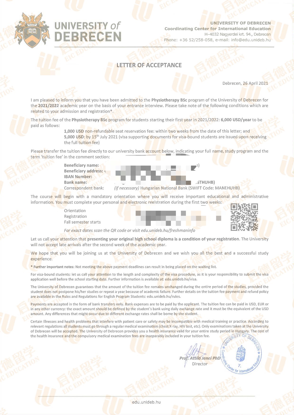 录取院校:德布勒森大学