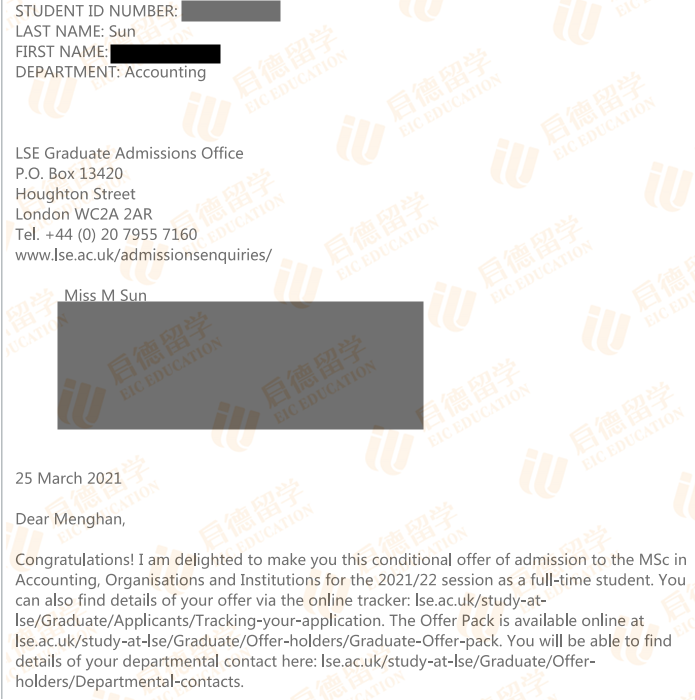 录取专业:MSc Accounting, Organisations and Institutions