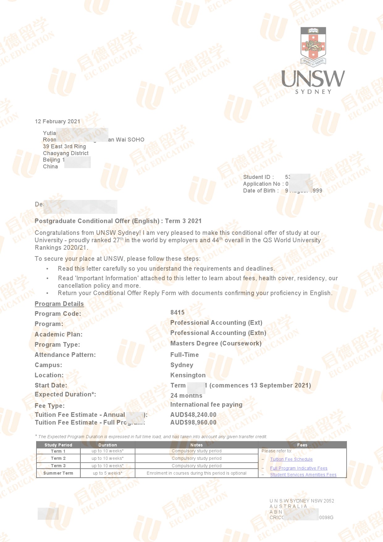 录取院校:新南威尔士大学