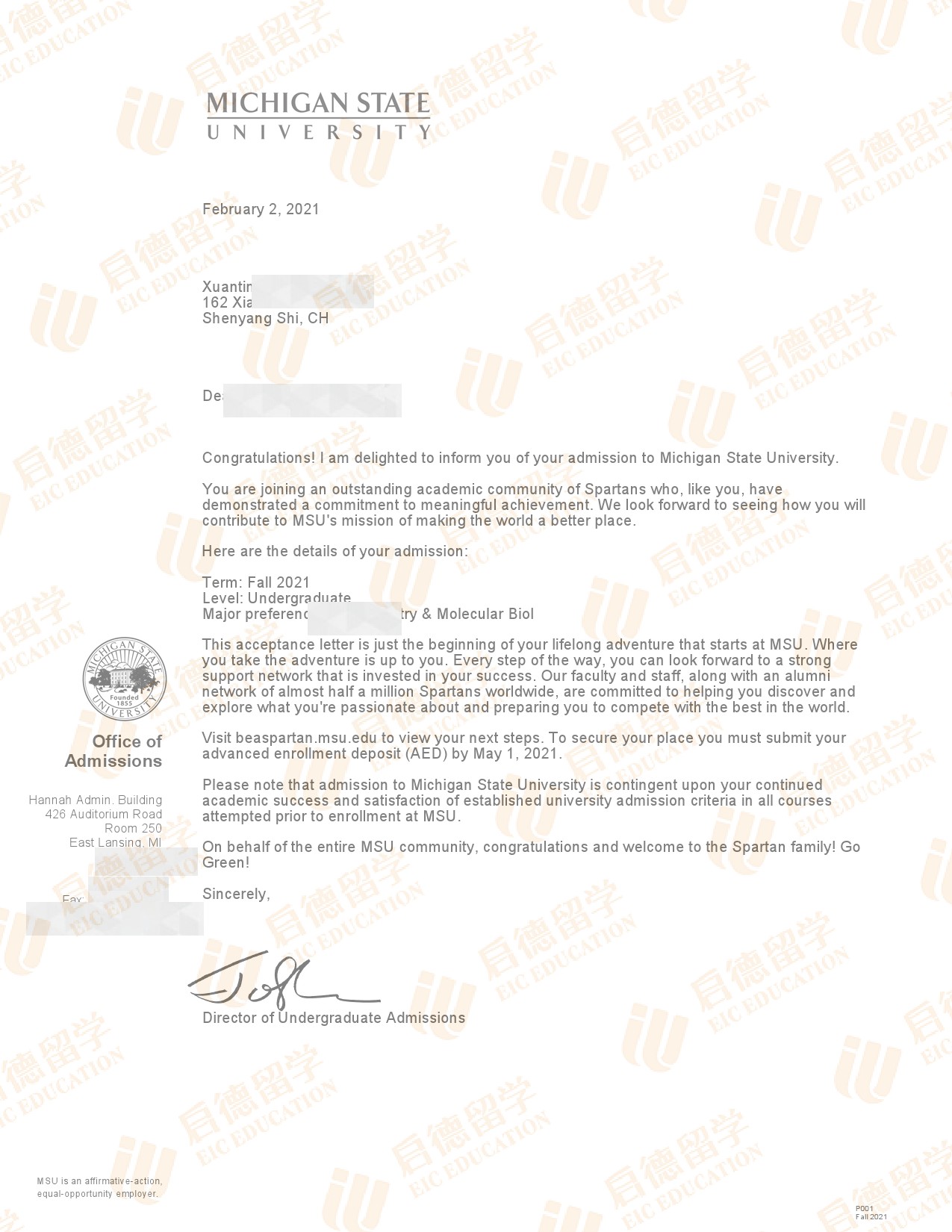 录取院校:密歇根州立大学