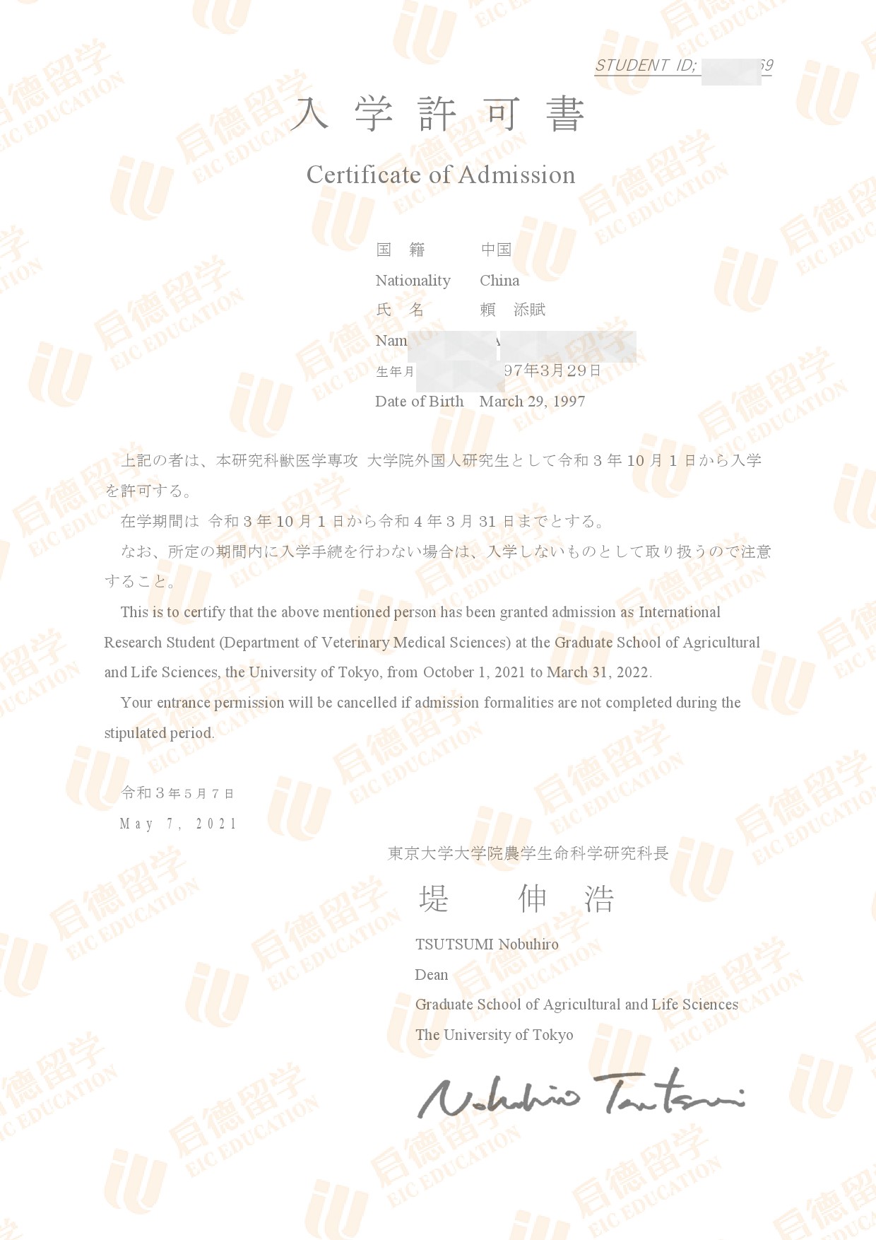 录取院校:东京大学