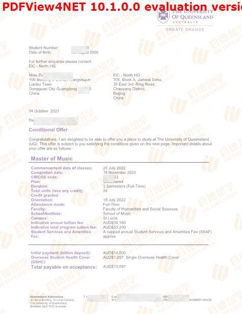 录取院校:昆士兰大学