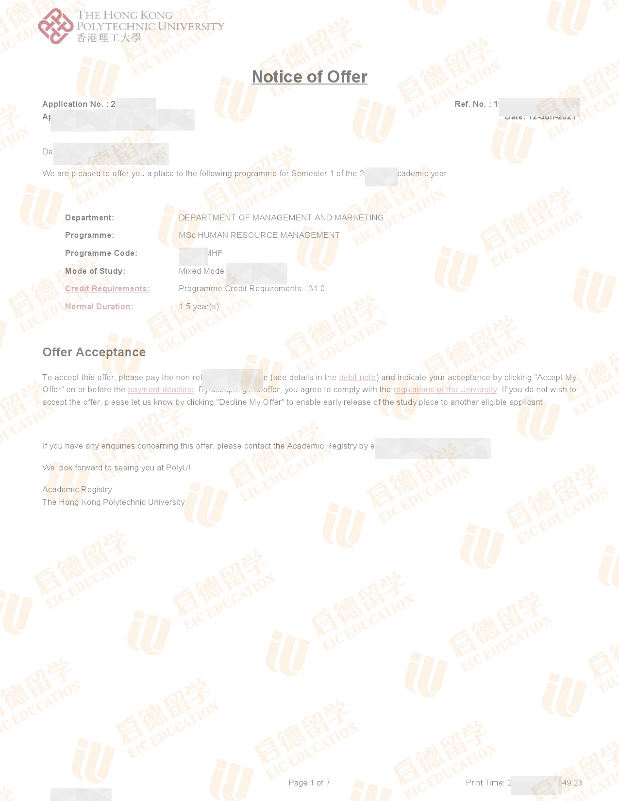 录取院校:香港理工大学