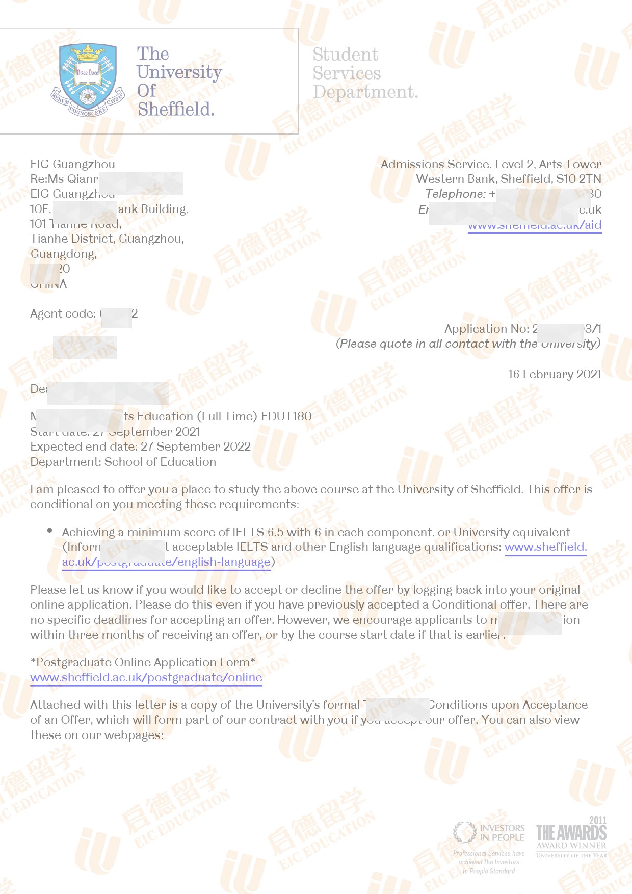 录取院校:谢菲尔德大学