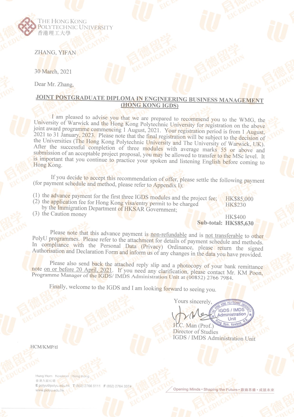 录取院校:香港理工大学