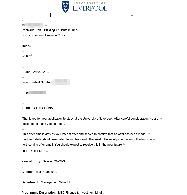 录取院校:利物浦大学