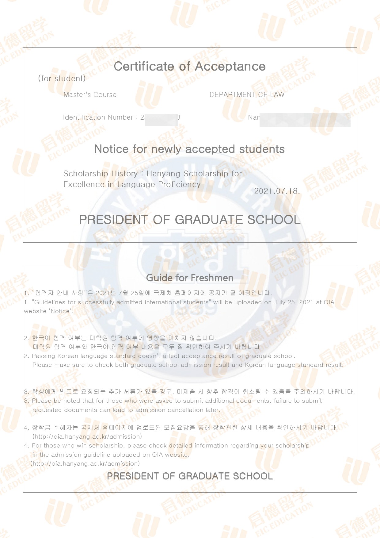 录取院校:汉阳大学-首尔校区