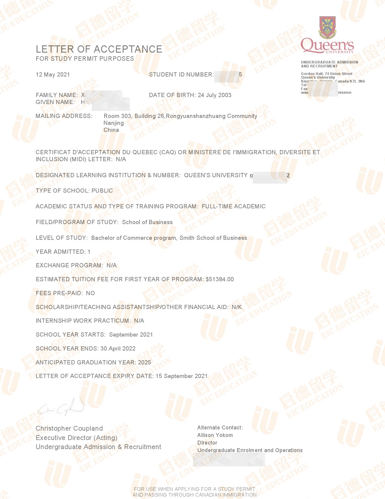 录取国家/地区:加拿大