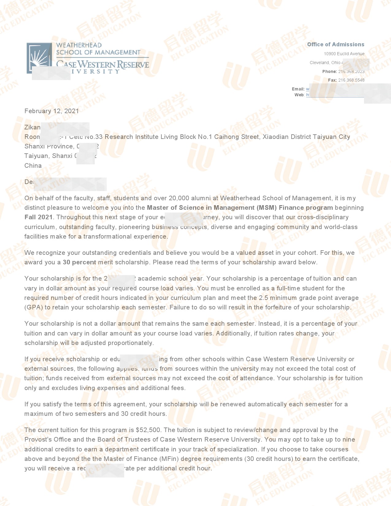 录取院校:凯斯西储大学