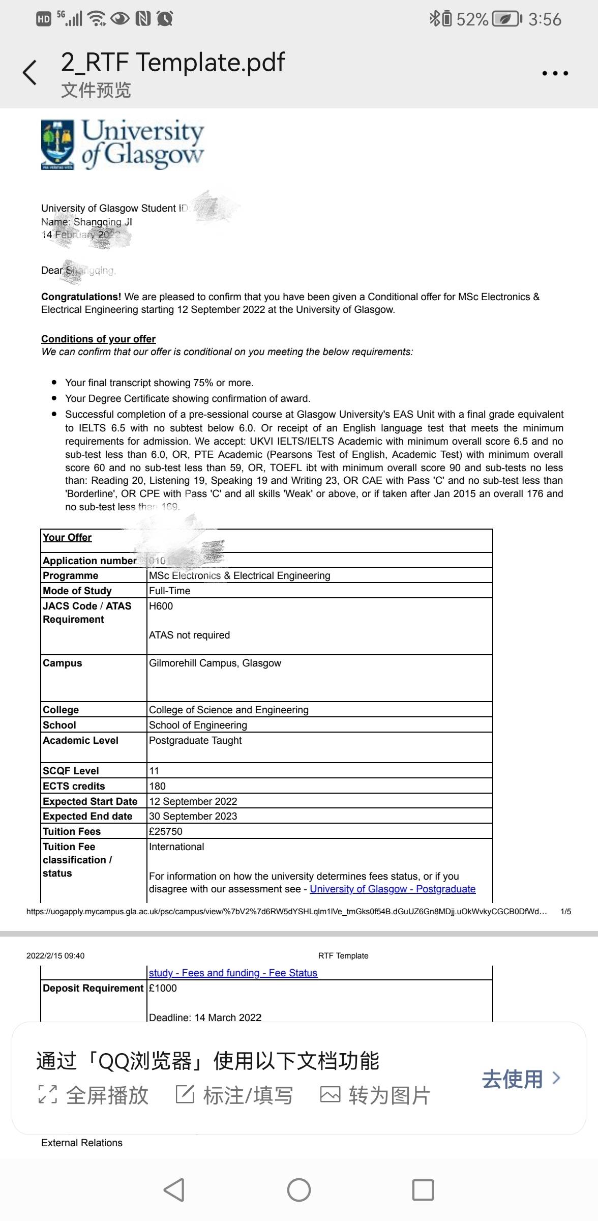 录取院校:格拉斯哥大学