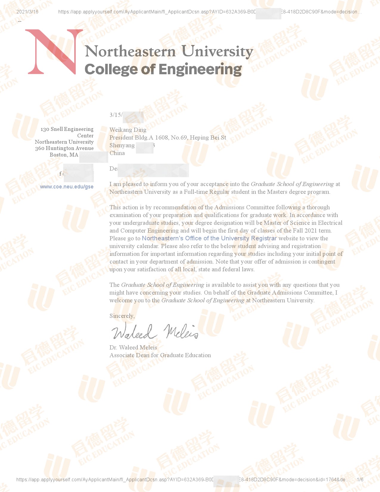 录取专业:MS in Electrical and Computer Engineering