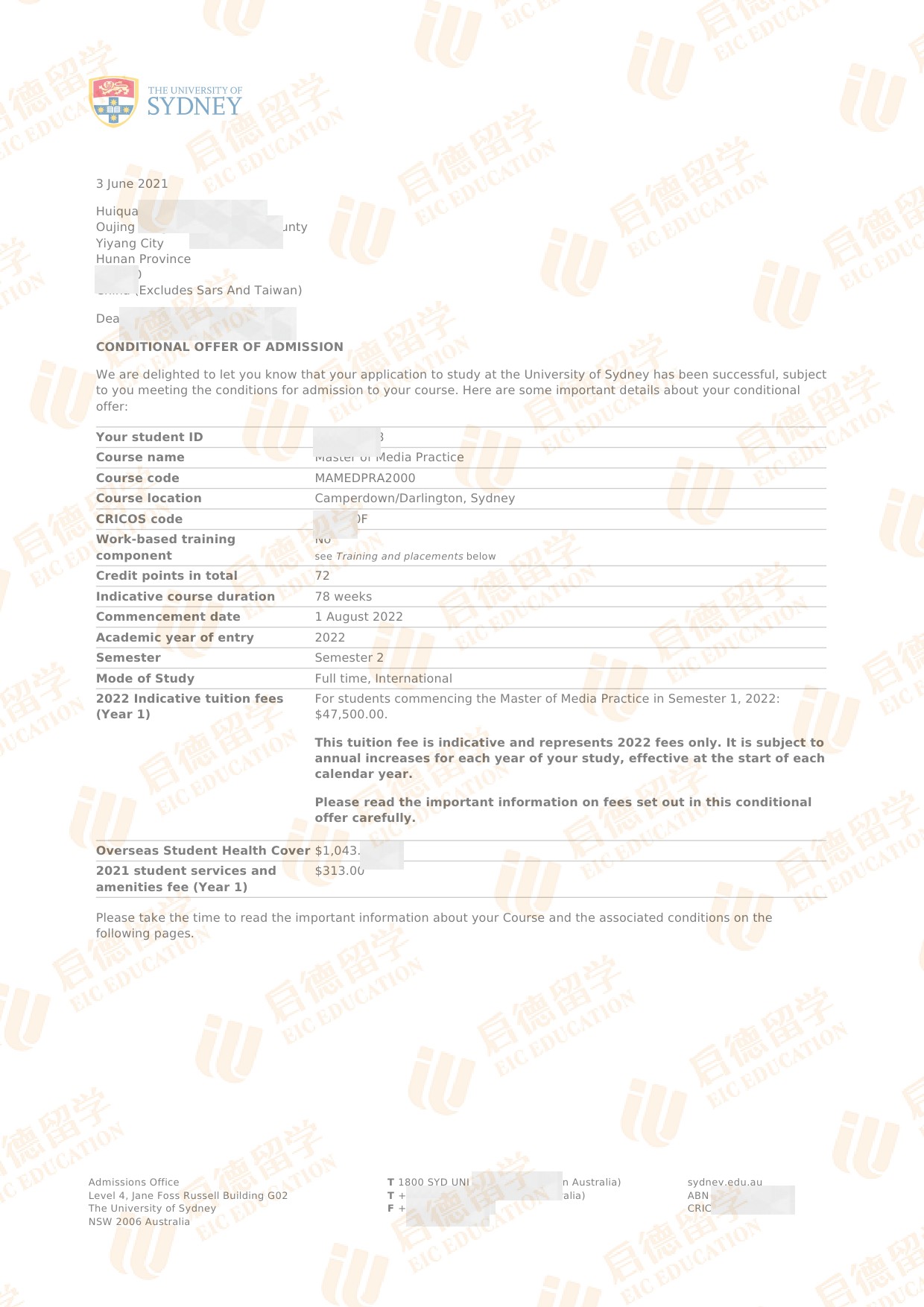 录取院校:悉尼大学