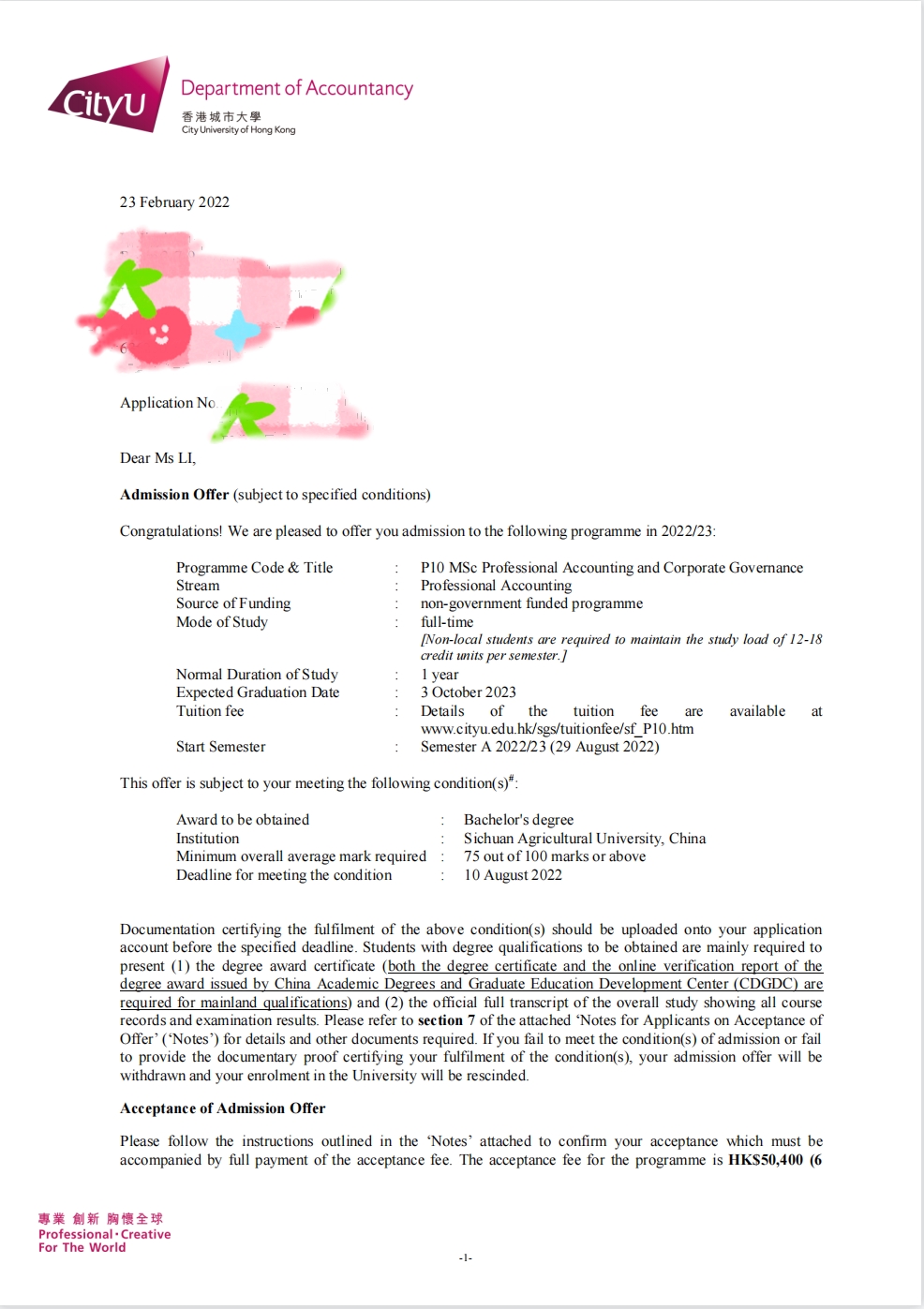 录取院校:香港城市大学
