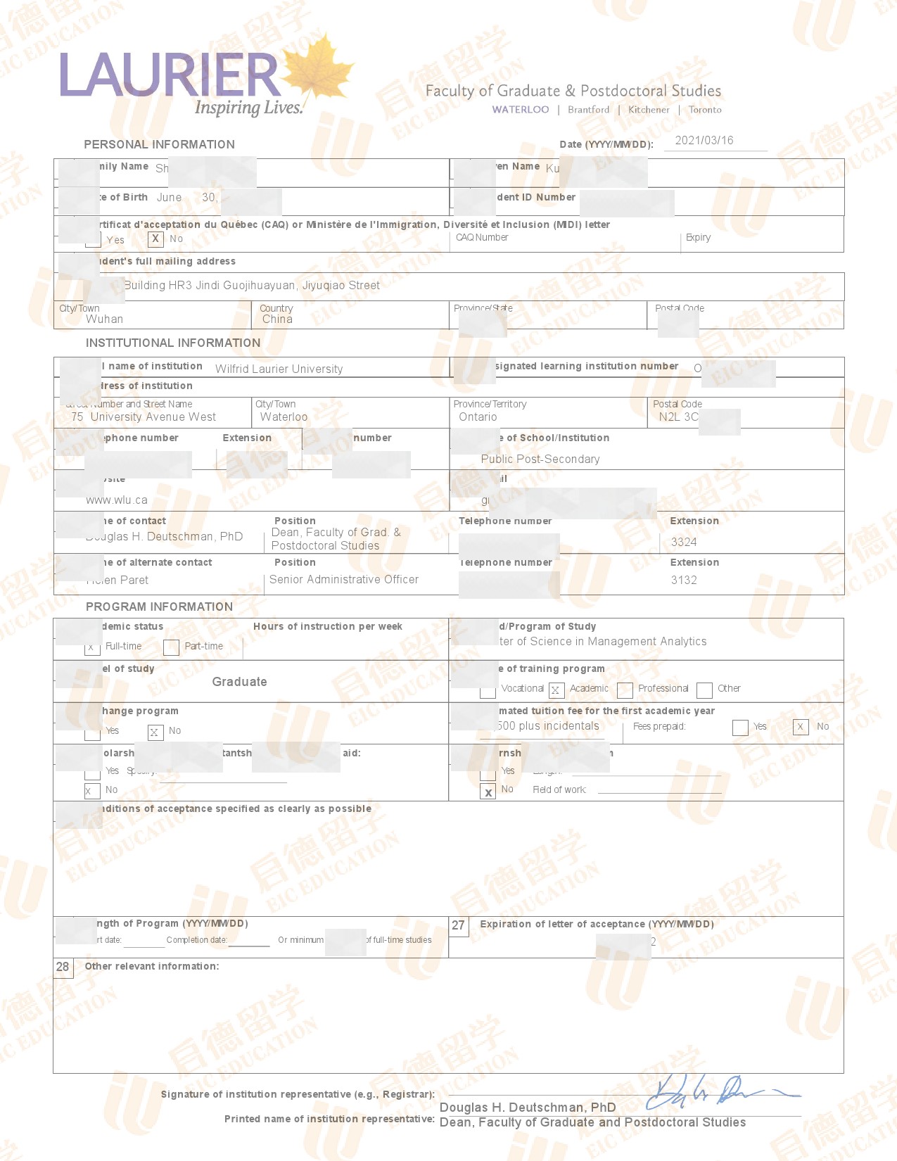 录取国家/地区:加拿大