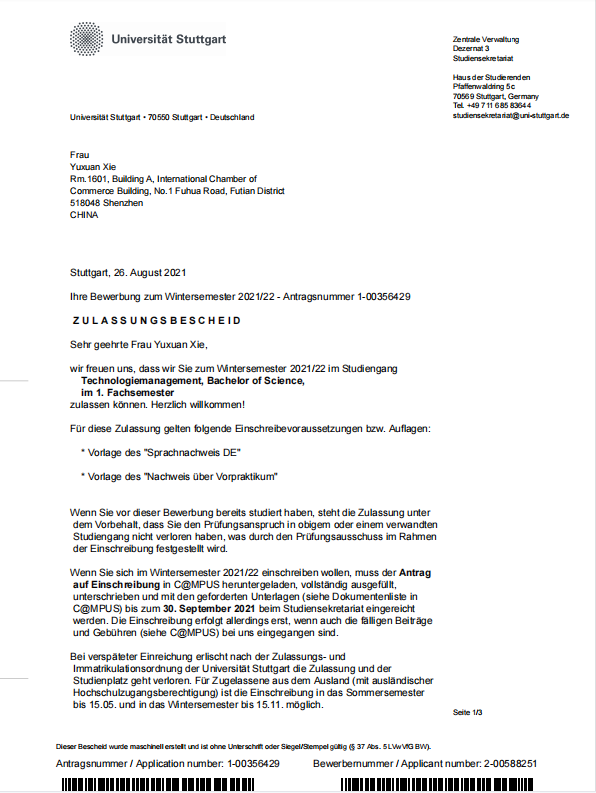 录取院校:斯图加特大学