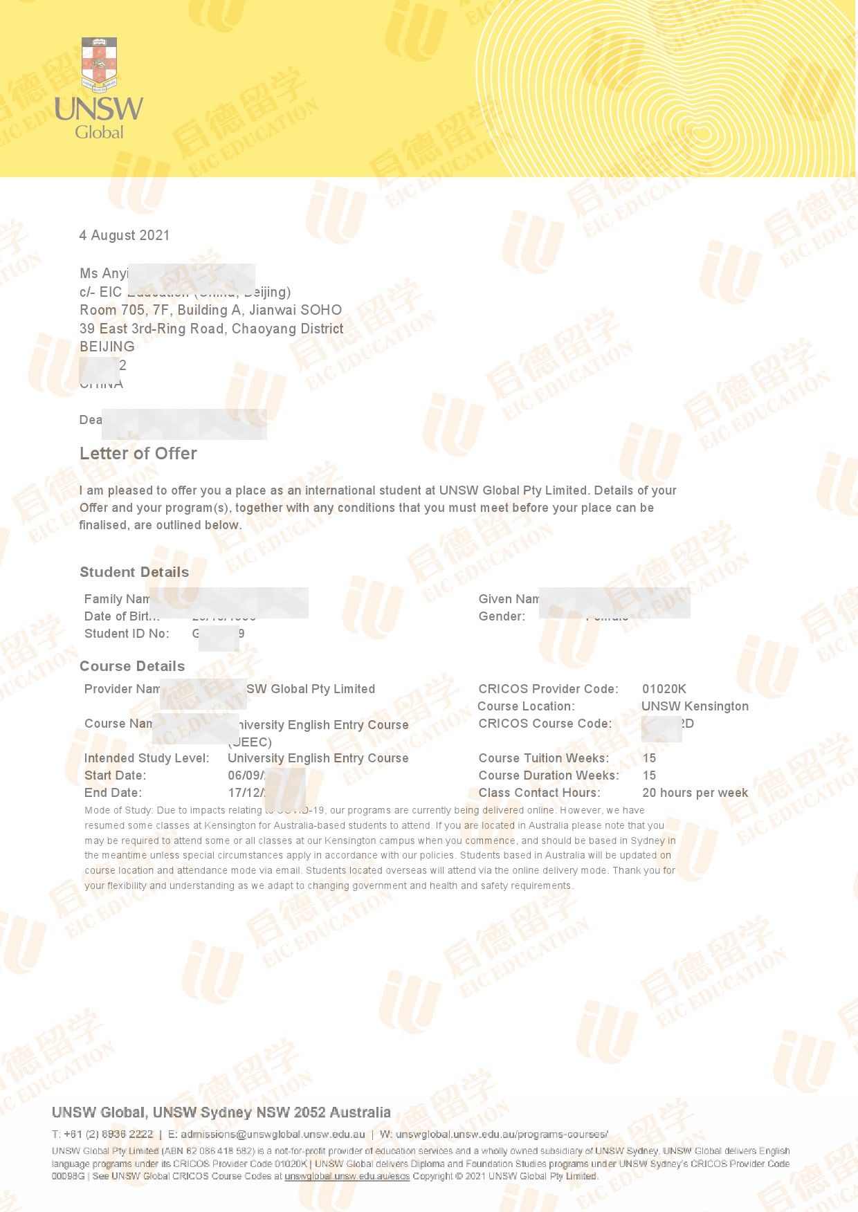 录取院校:新南威尔士大学