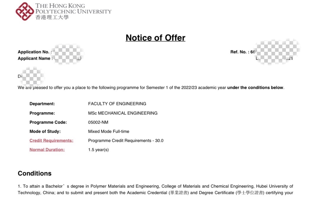 录取院校:香港理工大学