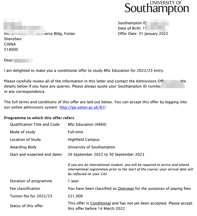 录取院校:南安普顿大学