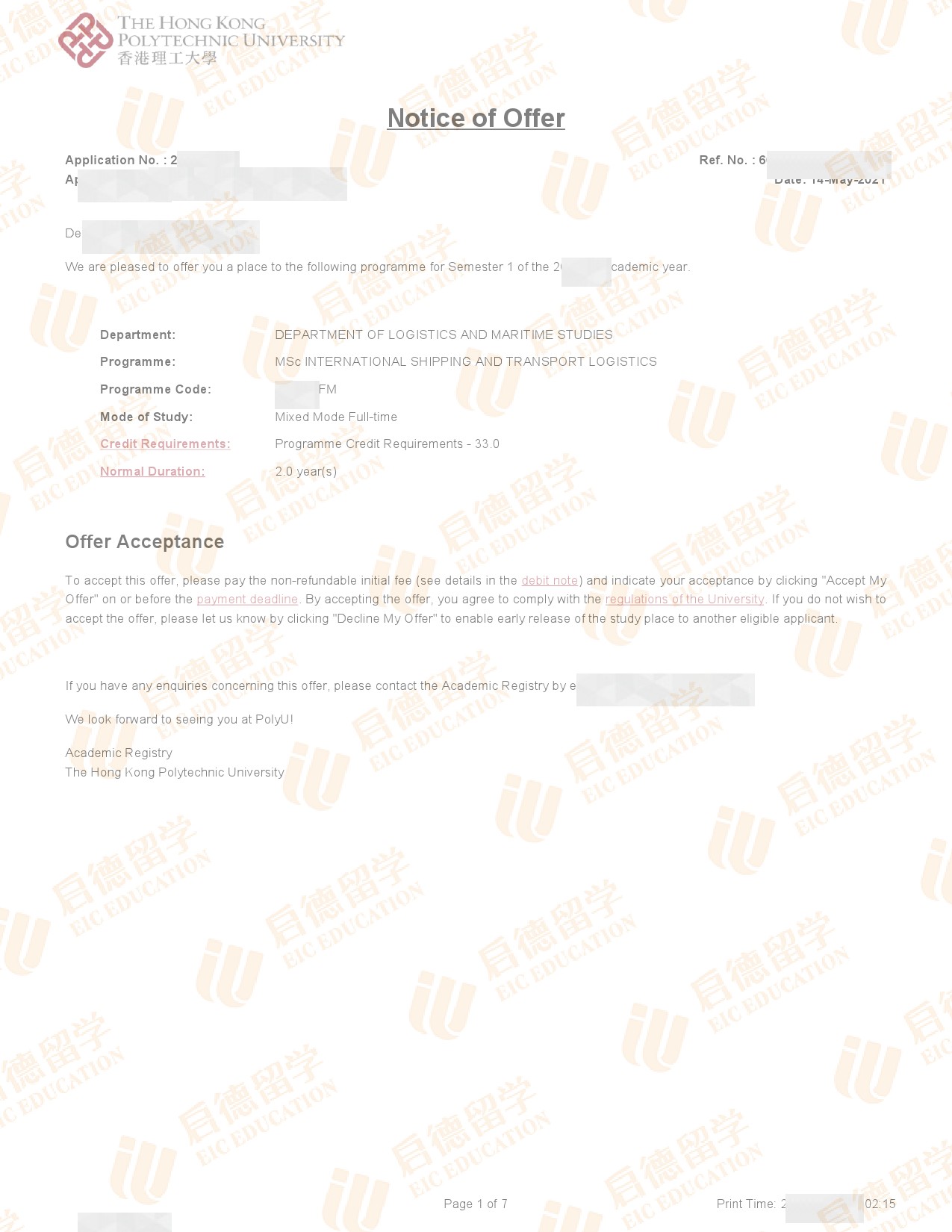 录取专业:MSc in International Shipping and Transport Logistics(IFM)