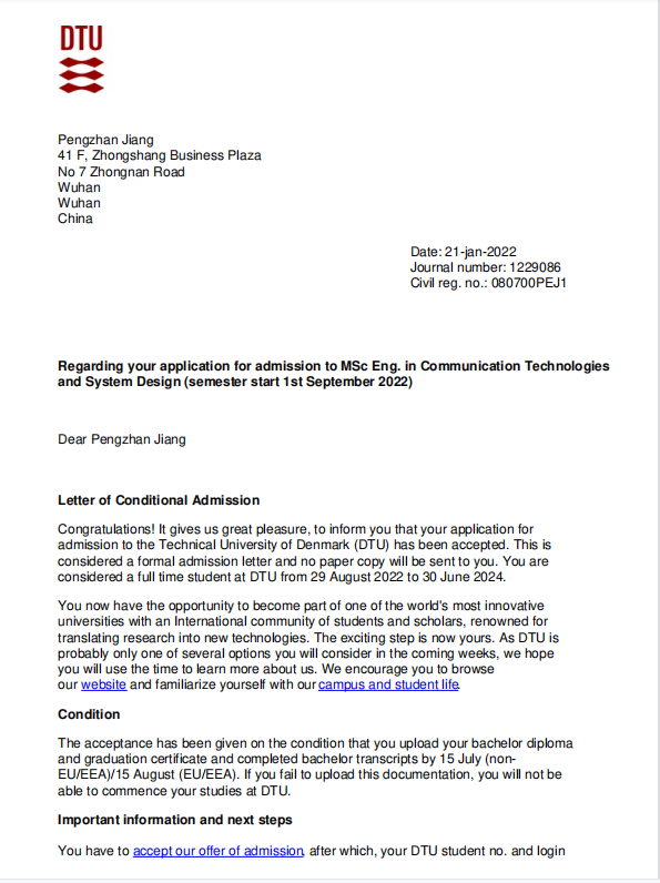 录取院校:丹麦科技大学