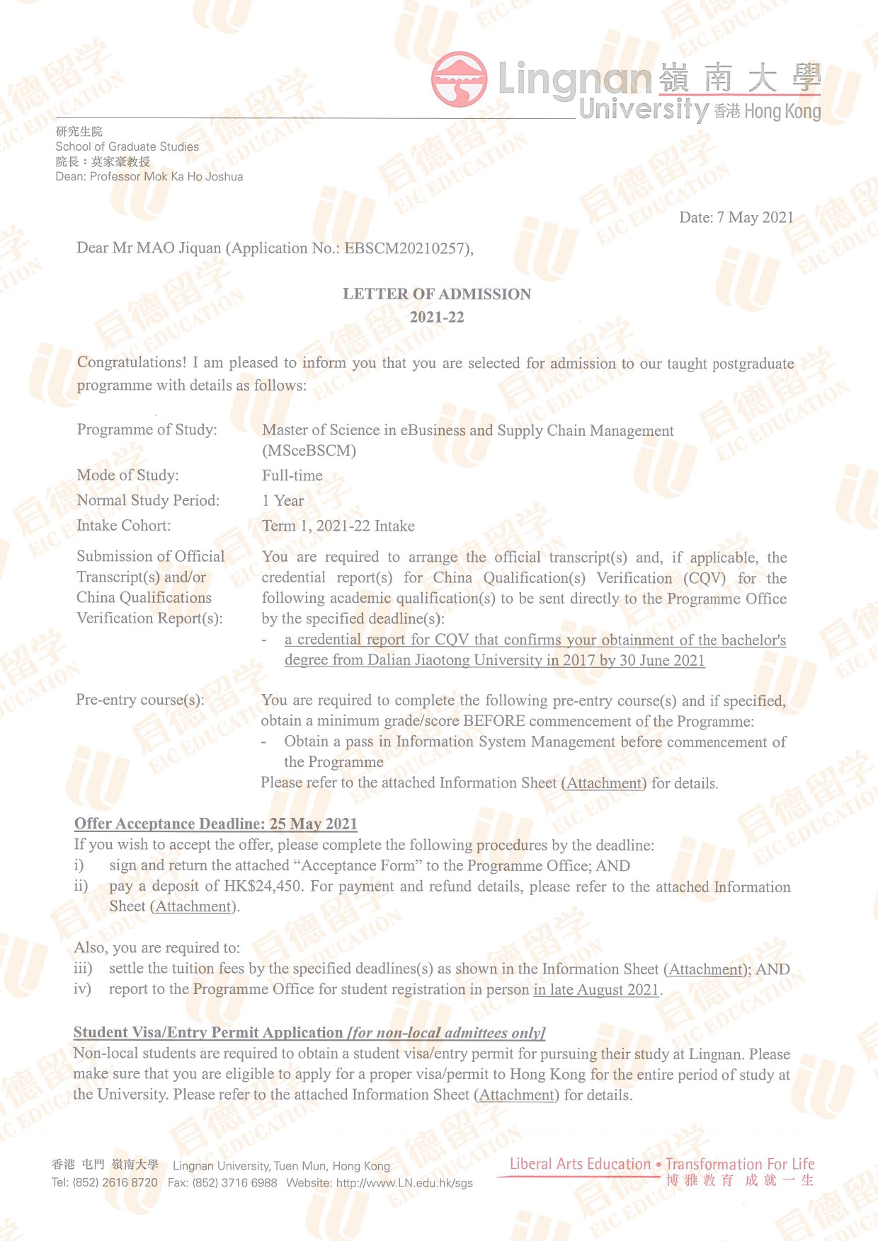 录取院校:香港岭南大学