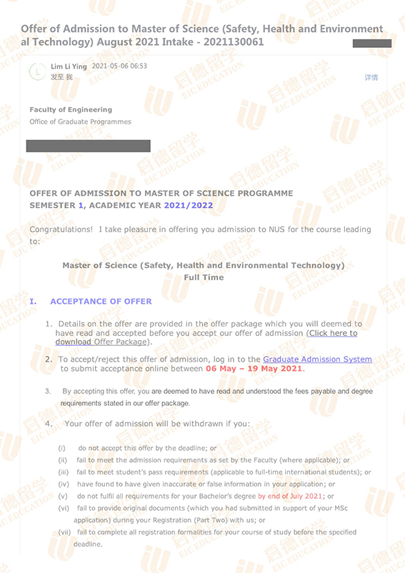 录取院校:新加坡国立大学