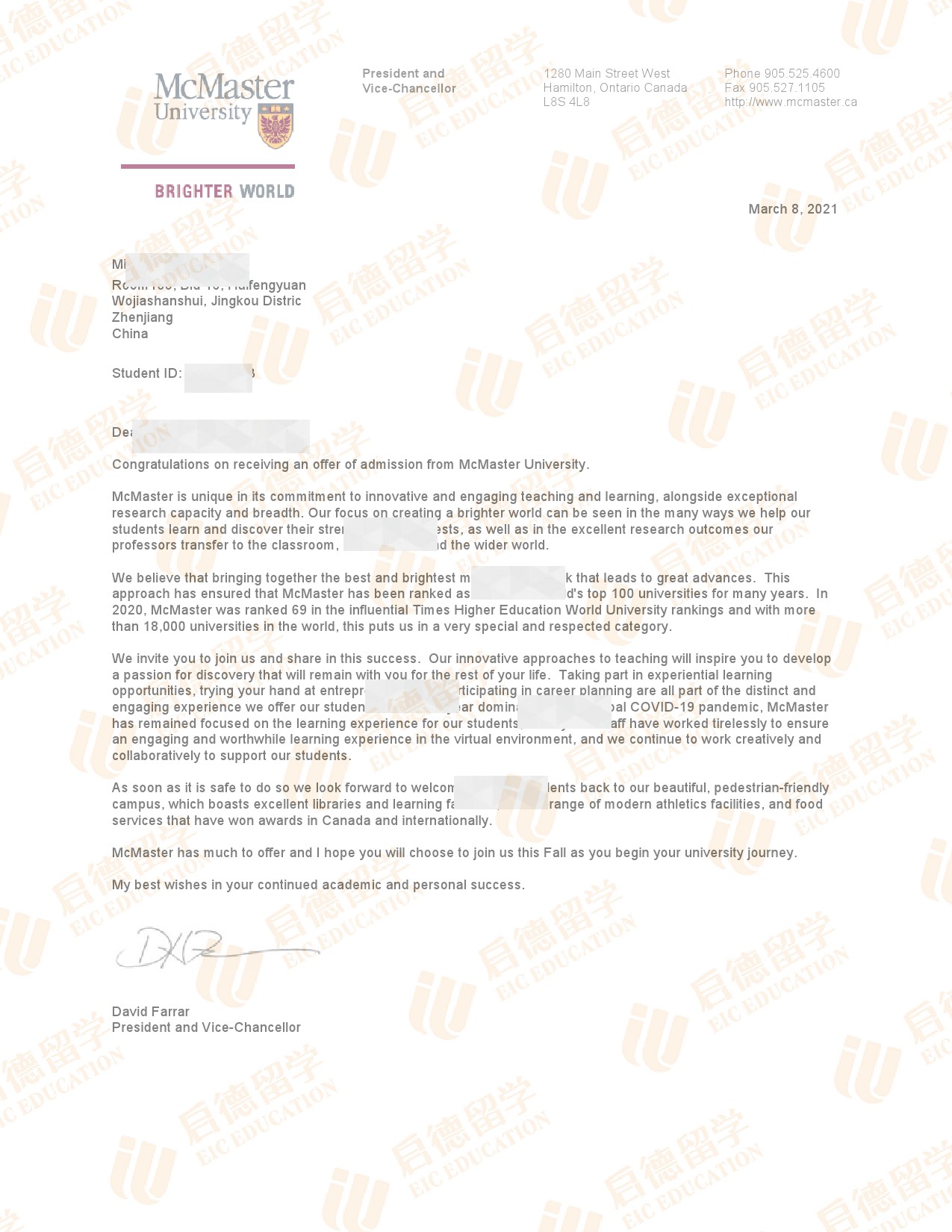 录取院校:麦克马斯特大学