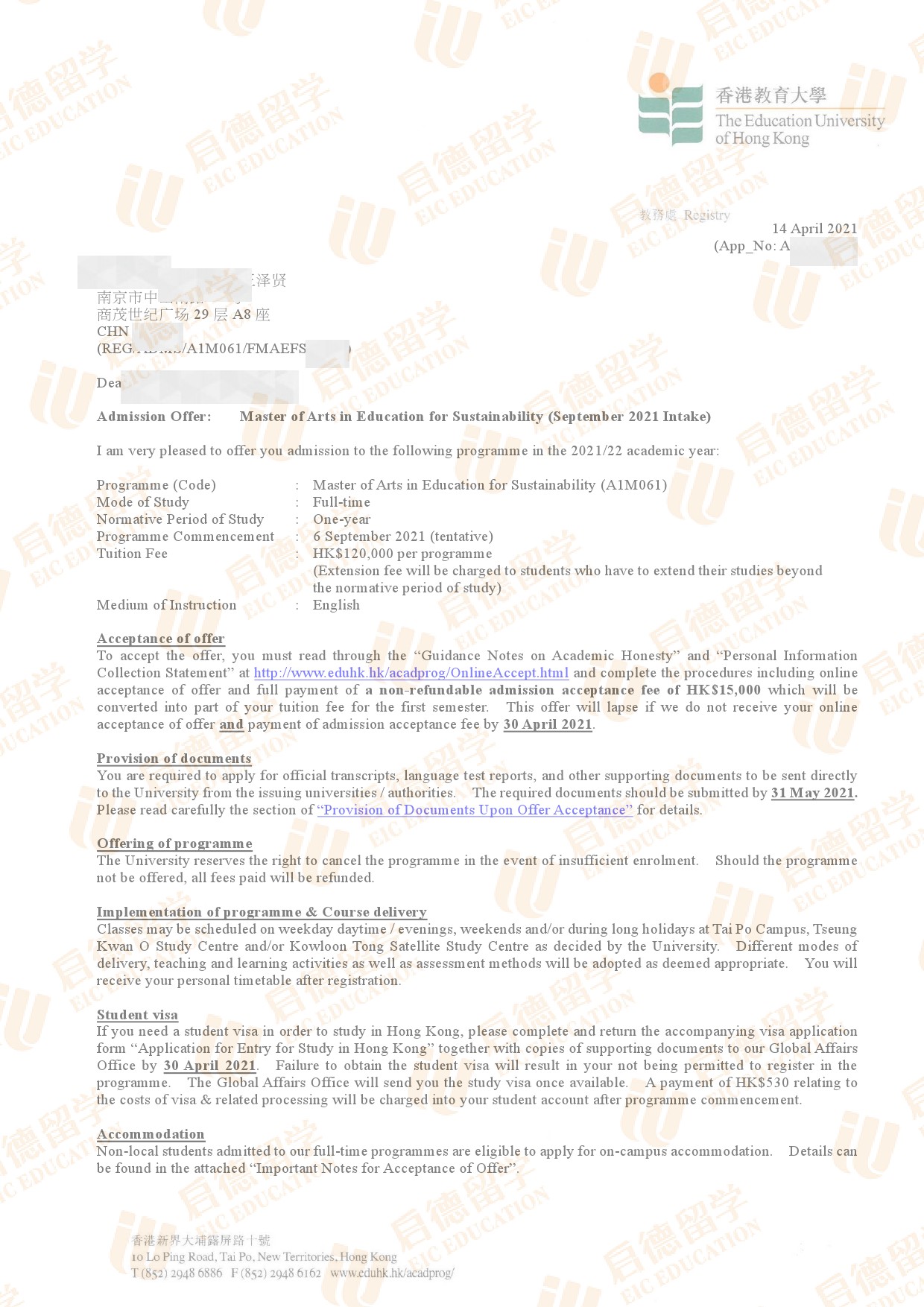 录取国家/地区:中国香港