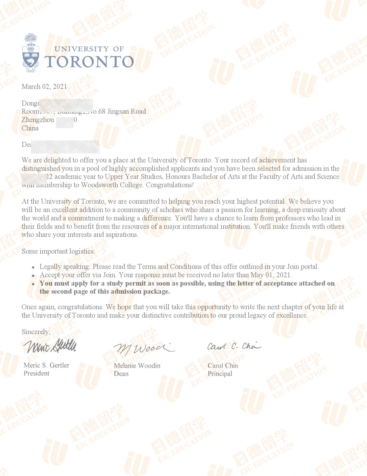 录取院校:多伦多大学