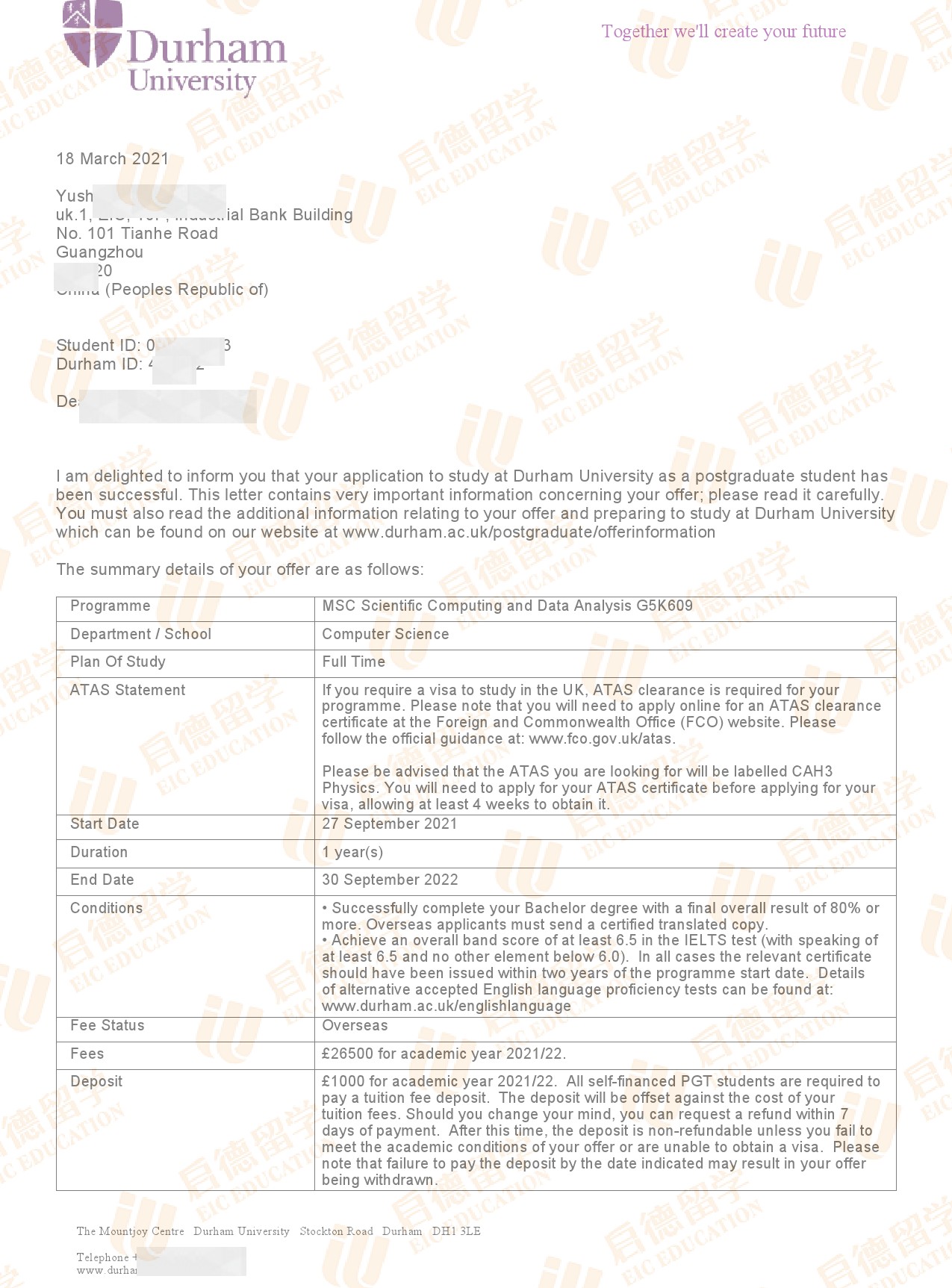 录取院校:杜伦大学