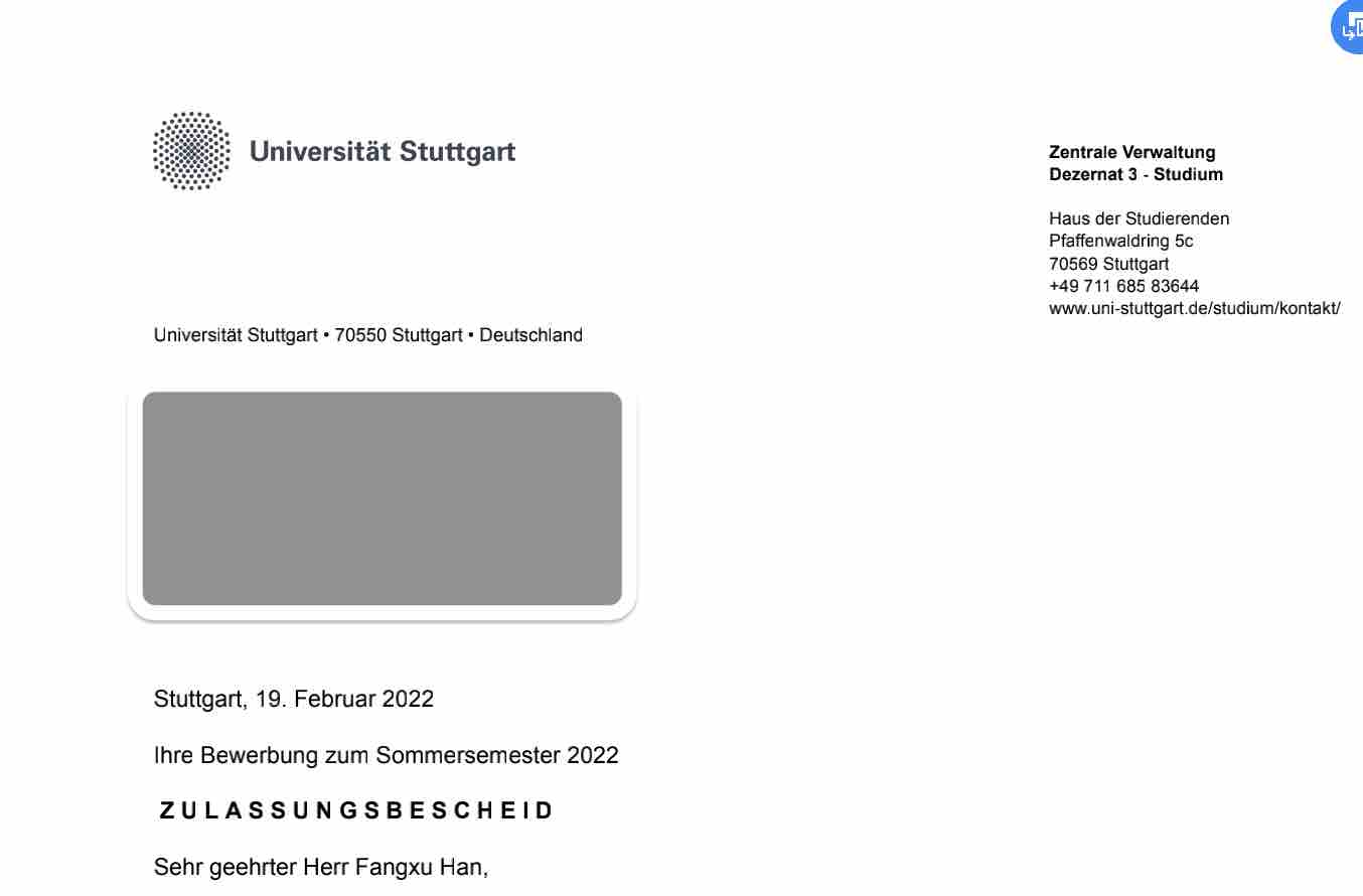 录取院校:斯图加特大学