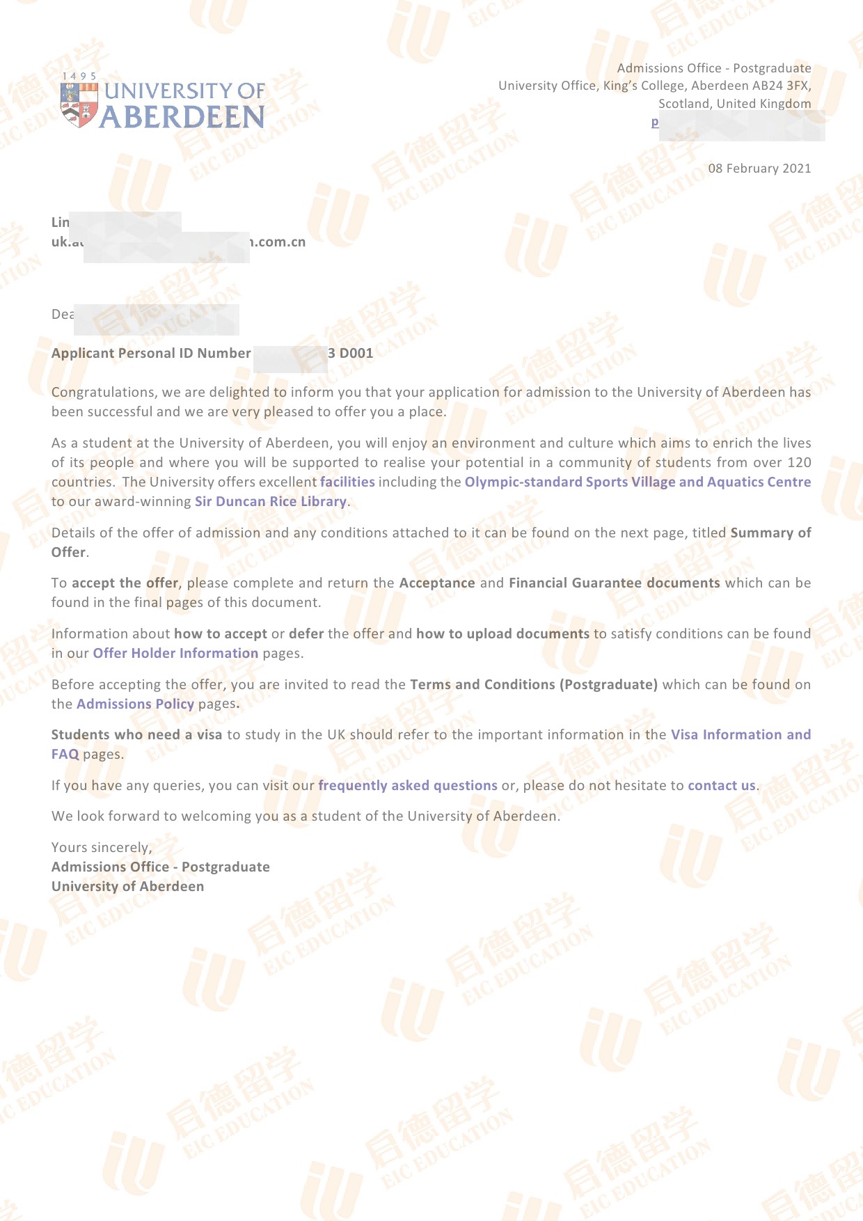 录取院校:阿伯丁大学